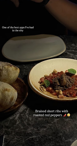 We had the crudo, wagyu tartar and the duck confit/ hummus to start and they were great. For mains we the short rib with the crispy rice and spinach. I don’t know what I was expecting with that crispy rice but that was amazing. Everything was amazing.