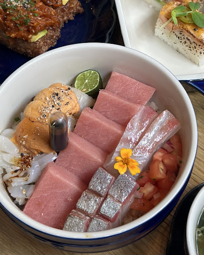 For lunch, we had the chirashi don, salmon pressed sushi, bluefin tuna shari canapé, and the ika tempura. The standout would have to be the bluefin tuna shari canapé for me, the contrast of the super crispy fried rice and the soft and creamy spicy tuna topping was amazing. The fish was super fresh on every single dish, the rice had the perfect seasoning and texture, and the tempura squid was hands down the best I’ve ever had. One thing I noticed right away is that anything fried here is just on another level, light, crispy, super fresh tasting, and not greasy at all.