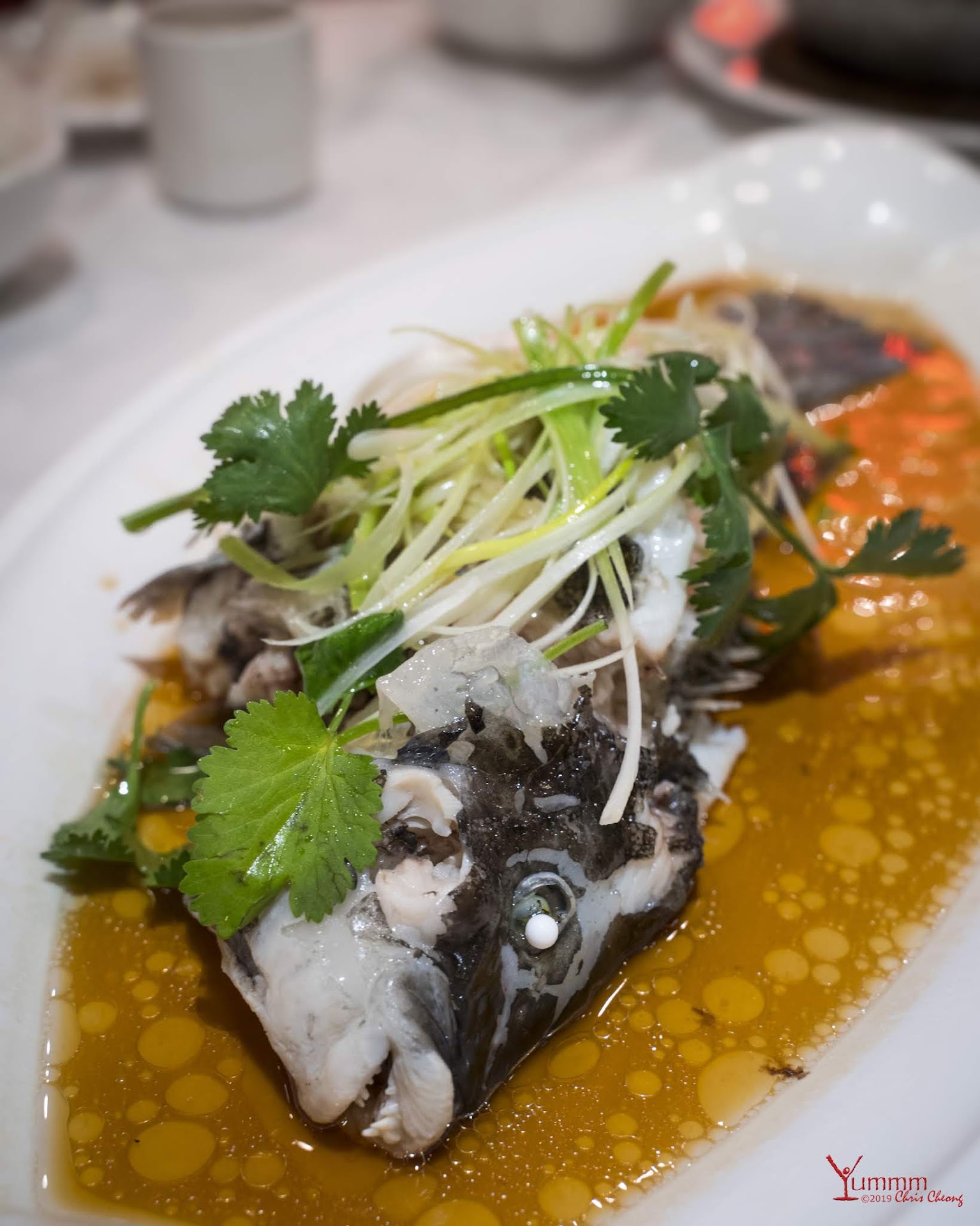 Our dishes included Lobster with Ginger and Green Onions, Steamed Sea Bass with Ginger and Green Onions, Deep Fried Chicken, Eggplant with Salted Fish, Beef with Broccoli in Bird's Nest (taro), Eggplant with Salted Fish in Hot Pot, and Sauteed Snow Peas Leaves with Garlic.