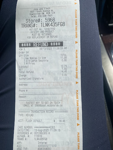 Read moreOctober 2023 Worst mcdonalds ever, they don't seem to be capable of filling orders correctly, always check your food before you leave, or you'll end up with the wrong order or a half eaten order. I definitely won't be going back there, I ordered a fish filet today and got a piece of greasy chicken in a mashed up box, as though it was someone else's half eaten order, how is it possible to do that? If I could give no stars I would, buyers beware if going to this location. CHECK YOUR FOOD!!