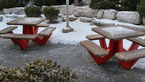 There are benches outside for when the weather is nicer. And lots of birds there to keep you company too.