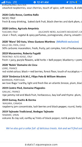 Read moreMidfield is my favourite place!! The wine list is wonderful with special descriptions under each wine, there was this wonderful creamy and textured chardonnay blend which I am still dreaming about . Not only a wine bar, midfield is also a food gem in the city! the chef has a farm where the vegetables are grown with love and you can tell, there are very creative/thoughtful dishes with the best seasonal ingredients. I have especially loved when celtuce is in season and on the menu, but year round the salmon crudo in its different iterations always hits the spot. Beyond the food and wine, the atmosphere is warm and very cozy. Everyone working is always incredibly knowledgeable and passionate, and they seem to have an uncanny knack for recommending what I should drink, its like we have the same palate. If you're looking for a place with amazing wine, outstanding food go to...