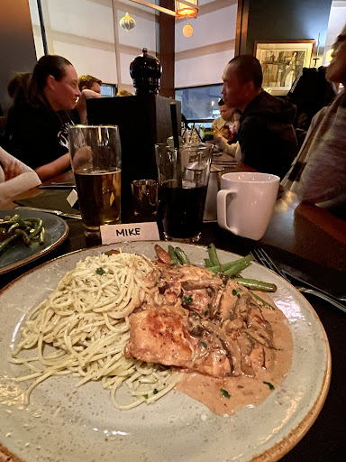 Read moreWe came on a Tuesday for lunch. There were lots of menu options which was nice. I ordered a beet and goat cheese salad with grilled shrimp and my husband had the chicken parm. We also ordered non-alcoholic mocktails. However, the negatives were enough for us not to come back. First of all, they sat us near the kitchen which we don’t mind, however, on this day the manager (or whoever he was) was very loudly coaching the kitchen staff on making orders. I specifically heard him say when they were making my salad that the chef was “giving away salad” and that it was too big a portion. When it got to the table it was supposed to have candied pecans and goat cheese in it. I had exactly two candied pecans and had to search for the goat cheese. For a minimal amount of lettuce, some blueberries and red onion with 4 grilled shrimp, it was priced way too high at $29 dollars. I hardly call that “giving it away”. My husband said his chicken Parmesan was good but that was also priced high at $27 dollars. We’ve had better quality for less elsewhere. The mocktails were good. The entire lunch all we could hear was the manager loudly coaching the kitchen staff which made it a bad experience. Service was okay, we never were offered water which we thought was pretty standard. In his defence, he seemed to be serving the entire room alone and probably couldn’t get back to us before we had finished our meals. At the end of our meal, the internet went down and they had to reset the wifi. Now we know this is out of their control, but we waited almost half an hour for the bill and there were still problems when the machine came. We had a meeting to attend and tried to patiently wait. No one offered us anything during that entire time we waited, not even water. We’ve had many attentive managers and wait staff at other restaurants that make sure the customers are having a good experience even when things go wrong. As we left, our waiter flagged us down to give us a coupon for a free appetizer. Nice, however, for the trouble, other restaurants we have been to have compensated our meals for far less hassle. We sadly likely won’t be using the free appetizer. Overall, the restaurant decor and general atmosphere is nice but after today, we likely won’t be returning to this location even though it’s probably good on some days. It unfortunately left a bad...