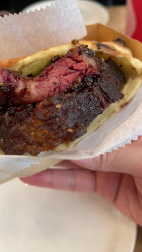 The service at Miznon is nothing short of exceptional. Staff members were not only efficient but exuded warmth and friendliness, making us feel welcomed and valued. Our order consisted of two exquisite dishes: the maple steak, a weekend special, and the candied steak pita. Both were mouthwateringly delicious, but it was the maple steak that stole the show for me. Its unique blend of sweetness with a hint of mustard created a flavor profile that was both bold and beautifully balanced. The pita, served by a kind server directly to our table, was exceptionally soft, wrapping the juicy, moist steak in a perfect embrace.