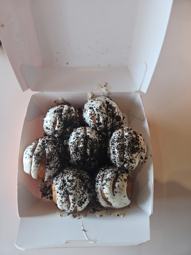 What Was Ordered A box of puffs. Fresh. Which apparently counts as a personal attack here. These are loukoumades, a Greek dessert that's basically deep fried donut balls drowning in sweet sauce options like Nutella, caramel, or strawberry. You get ten puffs by default. Want more? That’s when it gets weird. I once asked what the next step up was and the staff looked at me like I’d asked to marry their cousin. Total vibe shift. Like I had disrupted a sacred frying order.