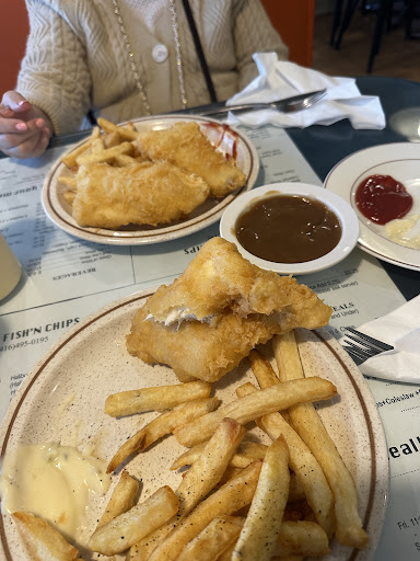 Read moreI TOOK MY MOM TODAY FOR HER 85 BIRTHDAY DINNER AND I WAS DISGUSTED WITH THIS RESTAURANT I SAW A POST ON TIKTOK SO I DECIDED TO TRY IT AS SOON AS I GOT TO THE RESTAURANT I SAW THAT THE ENTRANCE DOOR WAS VERY DIRTY THERE WAS A WOMAN AND 3 GUYS WORKING AND NOBODY WORE A HAIR NET THE BOOTHS WERE STAINED AND DIRTY THE CHAIRS AND TABLE CLOTHES WERE DIRTY I ORDERED A CHEF SALAD WITH MY FISH AND CHIPS AND I GOT SOME LETTUCE AND SOME SMALL BITS OF TOMATO AND CUCUMBER ON A SMALL BREAD AND BUTTER PLATE THE LETTUCE WAS BITTER SO I DIDNâT FINISH THE SALAD THE FISH WAS NOT TO BAD BUT THE FRIES TASTED LIKE OLD FROZEN FRIES AND THEY TASTED LIKE THEY WERE SOAKED IN OIL I WOULD NEVER RECOMMEND THIS PLACE TO ANYONE THAT I LIKE ONE MORE THING ALL THE WORKERS THAT WERE WEARING AN APRON LOOKED LIKE THEY NEVER WASHED THEM THE EMPLOYEES ALL LOOKED DIRTY BAD FOOD BAD SERVICE DISGUSTING ATMOSPHERE
