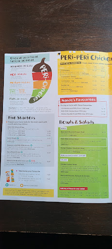 Read moreCame to this Nando’s location after previously going to and working at another location several years ago. They were relatively quick to seat us. The booth was dirty but the host cleaned it off hurriedly. It was very busy as is typical for a Saturday night. But they only had one cash register open so things were moving very slowly. Then another worker came and started asking people if they were seated since the host was no longer at the door. We told him yes and what booth we had as he was about to give it to a couple (we were three people). He then felt the need to double check with his colleague who said “no” at first before seeing us and changing his tune. Like why would we lie about already having a seat? That doesn’t even make sense. After finally placing our orders, we went to the drink fountain. No ice and the ginger ale and coke were flat and tasteless. There was no cutlery and barely any napkins. You would think with two managers on duty, they would be more on top of things. The girl who took our order promised a 20 minute wait time. Two orders came within 20 minutes and the other several minutes later. The fries were dried out and tasted stale or like they were sitting under the heater for too long. The chicken was okay but clearly Nandos doesn’t understand what hot and extra hot means. There was absolutely no spiciness to be found. And that contributed to a lack of flavour. The garlic bread, rice and mash potatoes were good. There was no table check. There was a table of 12 who ordered behind us and they did not receive their order until long after we finished eating. Ridiculous. I was rather surprised by the lackadaisical service. No one seems to communicate with each other, they don’t check on tables, nothing. One of the managers brought over the chocolate cake (don’t order it’s a small, wafer thin slice) and asked if we wanted 2 more forks and then he never came back with them. We had to go hunt someone down to get it. This whole experience can be summed up as “self service”. So don’t expect a true restaurant experience here. Think more...