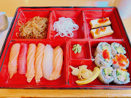 For something lighter, the sushi lunch ($14) offers enough food to satisfy without leaving you in need of a nap. Small bites of warm rice sit beneath the salmon, tuna, and butter fish in the six pieces of nigiri and a respectable California roll rounds...