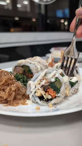 I got the Shrimp Kimbap which came with jhap-jae, both of which were really great! My friend got the Korean Fried Chicken Rice Bowl which was even better. They also offered us a small bowl of soup for dine-in which was a great addition! They have amazing offerings for desserts which I can't want to go back for.