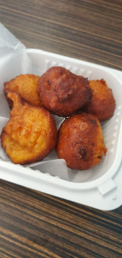 Read more1st time visiting this nice establishment. I'm not a seafood lover but I did try the conch fritters and I liked it. It was a little bit salty but very flavourful. The texture of the conch chunks reminded me of cow foot #IYKYK The dip served with the fritters was sort of like a spicy aioli but I personally believe some type of sweet sauce like tamarind would've been more complimentary. I took the rest home for my mom & she loved them which is a huge deal for my Caribbean mom to compliment anything she's never cooked, lol. She's been cooking over stones from a very young age so it takes a lot to impress her and please her palette. I also ordered white rice w/ their guava bbq chicken and a side of potato salad and fried plantain. The server did not tell me they were out of white rice so I got their version of rice & peas which reminded me of Trinidadian pelau but some of the rice grains were not fully cooked. The plantain was delicious (you can't mess up plantain) and so was their potato salad despite the heavy addition of mustard. The sauce on the chicken was delicious but it was giving more bbq than guava. I'm thankful everything was prepared fresh but the wait time was very long and my food was not served at the same time or even close together as my friend so we were not able to eat together as planned. Their lemonade can absolutely get some love because it complimented my meal very well and wasn't too sweet or too bland for my liking. Overall, the food truly tasted good and the dining space was clean, colorful and the music was very fitting and the volume wasn't too loud to make...