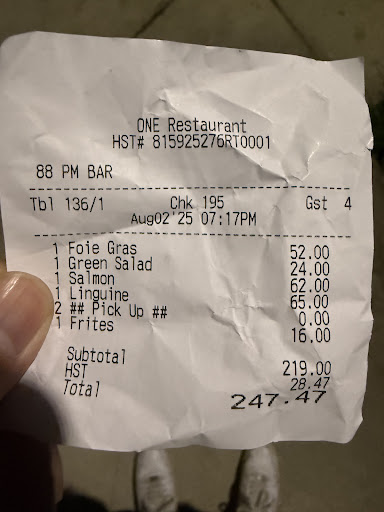 Read moreAs a customer of One for years now, we had the most disappointing experience today with the most rude, awful customer service and will never go back. We arrived on the patio with a reservation and with our small ESA dog and were sat at our table with no issues. Soon after, a manager came over to tell us our small dog had to be on the ground and not on our lap (where he was barely visible ) even though dogs are allowed on the patio. We told her he is an ESA dog with doctor documentation, and have brought him there before several times, but regardless, have never heard of that rule anywhere in the city or Ontario. She told us they have received lots of 'fines" and it's not allowed. We proceeded to tell her he dines INDOORS at restaurants all the time and why would he have to be on the ground outside instead of on our lap, she went on to insist in a very rude manner that its.a provincial rule which is an outright lie. We told her it is because he is used to being on our lap everywhere, he would likely try to get up on our lap throughout our time there, or otherwise it wouldn't be an issue. It was her condescending tone and manner which was beyond rude, especially for an establishment of this calibre, that we frequent often. We also told her it was our anniversary, and we always spend our anniversary there, and she cut me off and proceeded to rant that it's a rule and spoke down to me. She left the table, we put our dog on the ground to see if it would work, and then a server came over with the exact same attitude basically barking at us for a drink order. My husband and I could not believe how we were treated, especially at a fine dining establishment such as this. After both staff members belittling us, I decided I was not going to stay there. My husband owns a company in the city and often takes his staff out to dine, and both he and I will never ever step foot here again. What a shame. To top it off, it ruined our day, which was a special occasion. We did end up going elsewhere in Yorkville to eat, but the staff at ONE definitely ruined a...