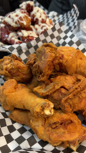 -Front patio is small (about 6 tables) but very nice. It's covered and well-lit. -Food came out fairly quickly. -Food was pretty good, though some dishes were better than others. My friend really enjoyed her kimchi jigae, and seafood pancake was delicious. Stir-fried squid and vegetables with rice was a touch bland - needed more spice and salt. The original fried chicken was only ok - batter was uneven and there were spots of dry meat. Agree with other reviews that wonder what the big deal is. KFC from Galleria is much better.