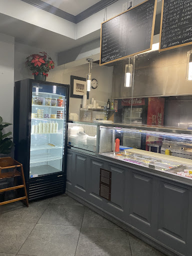 The interior of Orly Restaurant & Grill is simple and welcoming, with comfortable seating and Israeli-themed decor. The atmosphere is relaxed and inviting, making it a great spot for a casual meal with friends or family.