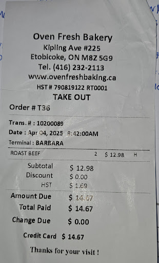 Read moreThis bakery is a gem! I was looking for onion buns and couldn't find them at ant of the large bakeries. Oven Fresh has them and a lucked out because they had day-old buns for an amazing price. They also have deli meat and cheese as well as snacks like beef patties and sausage rolls and you can get freshly made sandwiches and...