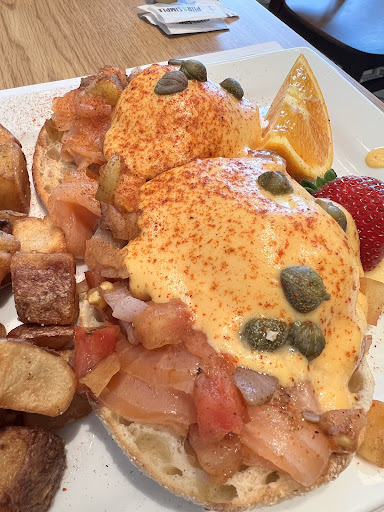 Read moreCame on a Saturday around noon, took a while to be greeted but was seated quickly. A modern chic breakfast place with a variety of items and nice decor for the Instagrammers. Quite loud and tables are pretty close together (I could reach over to take the next table’s coffee if I wanted to). Certain sections of the restaurant near the door get breezy and no one wanted to sit there lol.