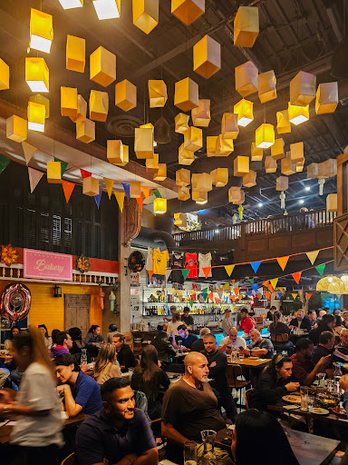 Atmosphere felt more like a theme park than an attempt at an authentic Thai street market experience. The very tall ceilings made it seem like a kitschy decorative warehouse rather than a crowded food market. And I'm just glad we got a table along the side and not the big open area in the middle. I still remember when this building was bad nightclub after bad nightclub, and sadly, the space just feels like that, except with Thai decor. It looks fun in photos but doesn't feel great in person.