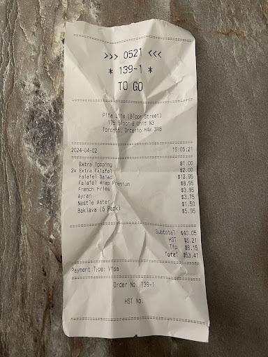 The falafel wrap and salad were ok. While I expected the falafel and fries to be fried in (inflammatory) vegetable oil, what surprised me was that the Ayran had potassium sorbate as preservative and the baklava was made with vegetable oils & vegetable ghee which is almost fully transfat and very unhealthy & tasted pretty disgusting. She would not let me read the ingredients before hand.
