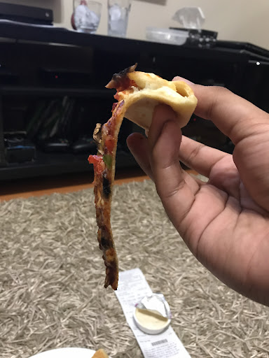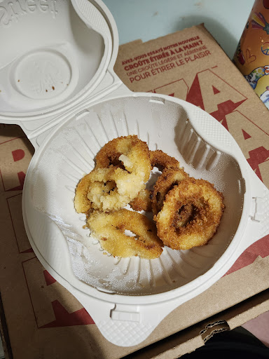 When the driver called to say he would arrive in 10 minutes, I questioned him since he had earlier claimed to be at my house. Nevertheless, I expected my delivery soon. When he arrived, he handed me my food and left. I had ordered the daily pizza special and an order of onion rings. The pizza was stale, rock-hard, and tasted like cardboard. I received maybe five onion rings for $6.99, some of which were undercooked and others completely soggy.