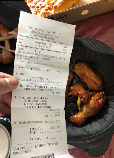 Read moreHi I order large stuffed crust Chicken Arrabiata monday night around 9pm at deluxe inn, Store is 2 minute walk though Pizza arrived at 45minute Under cooked and my topping were missing, And I tipped the driver without checking. I added extra topping and the chef forgot to add them, I don't complain, I'm not that person We just didn't eat it more then one slice. Following morning cause of under cook we had upset stomach. And i ended up not going to work, I called customer service and she sounded like she herself is having the worst day of her life. All sad and down over the phone, Like she hates her job, She just took my complain and hanged up. Didn't take my details where I order or my phone number.. I was thinking like seriously, I would not recommend this store to family and friends,...