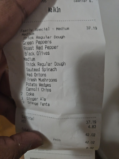 He came back with the visa terminal/machine. I told him I wasn't pleased about the waiting on him. That I really couldn't cozy up in front of the tv and eat the pizza the way I wanted because I had to be in readiness for his return. He told me, "then you can order from another restaurant and don't order from this store again." I still gave him $3.00 tip and mentioned to him that I will let the store know his thoughts re: not ordering from that particular store again. Side note: I do order (pickup) from this store quite often as it is less than 5 minutes from where I live. Never had a problem with them, employees were always courteous. Until this delivery person my experience with the store was a pretty good. The pizza was tasty. But no more deliveries for me. Update: I spoke with the Manager: Neema, he said that I should ask for him when I drop in next time...he seems concerned about the delivery's...