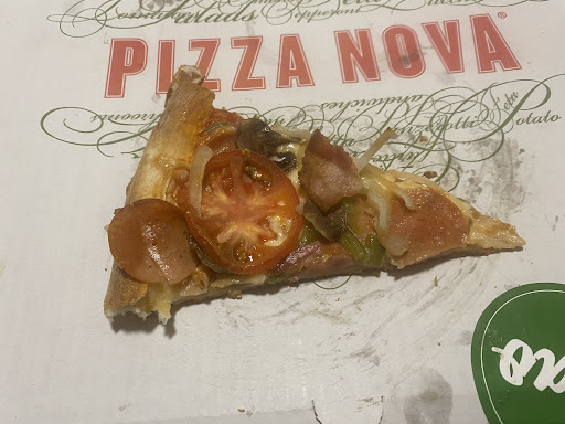 Read moreReally disappointed with this location. I normally order Pizza Nova through work, different location, and it’s great. We ordered tonight for pick up - pretty much $50. And for that, we got two terrible pizzas, meh wedges, pizzelle and 6 pop. Both pizzas were beyond well done, one having an entire half burned to the point of being pretty much inedible. So that’s half a pizza in the garbage. Both were so dry, they were hard to eat. The veggie pizza was also burned on half to the point of it being unpleasant tasting but not inedible. It also had so little sauce it was hard to even tell if there was sauce on it. Also, it had one single paper thin (see photo) slice of tomato per slice, so instead of a pleasant mix of all the toppings, it was only the last two or so bites that had any tomato. Two of the 6 pops we ordered were also not available, though that doesn’t really matter. Honestly, if this is what this location has to offer, we will not be ordering again. Save your $$ and go somewhere else.