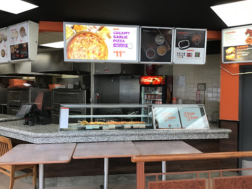 Second time going to this location and once again it was filthy. The first time I went they were completely out of napkins and the atmosphere was disgustingly dirty. Today however I had the worst expierience with the company as a whole and honestly will no longer be buying any of their products nor will I be taking advantage of their services. I had bought a slice my first time trying the thin one they had in the display it was stale and kind of on the hard side. Anyway I had wanted to use the washroom, the door was locked so I asked the woman standing closest to the bathroom door If I was able to use the washroom she denied me saying it was broken. I then sat back down and a man approached her very shortly after to use the washroom, she allowed him to use the washroom I was shocked as she had sized me up and down then told me it was broken and noone came to fix it. After eating my pizza I approached the counter and explained what had happen to the lady working on til, I asked her for the womans name as I wanted to call in and complain she not only denied me the name but after dicsribing the exact person to me then went on to acting as though she spoke no English and didnt understand what I was saying, saying she didnt know who I was talking about. Rediculas! I asked her why she was doing that and she then started speaking English fluently again so I asked again if I was able to get her team members name she told me her name was "mama" thats what they call her. I told her this is suppose to be a professional environment her giving me phonie names is unaccepable she told me to go find her and get her myself. I said mrs if your not going to provide me with the name then what is your name, so I can let them know about your behaviour as well. she denied me of that as well she walked off and didnt say anything to me and said something to a man that was working there, and he aggressively came over and started raising his voice at me I backed up and said you guys are rediculas what kind of place are you running here. He started to make his way in what seemed like around the counter towards me and seemed very angry, I was frightened so I told him it was okay nvm I will just take my business else where and left. He was so intimidating and I lelt feeling very uncomfortable. I will never go back there and never buy from this...