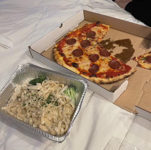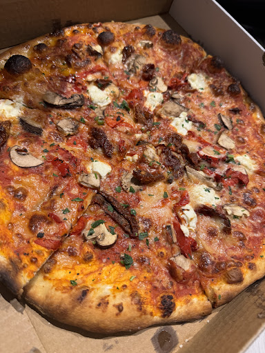 The next pizza arrived, 15 minutes after the first, this one borderline inedible with a layer of charcoal on the outside.