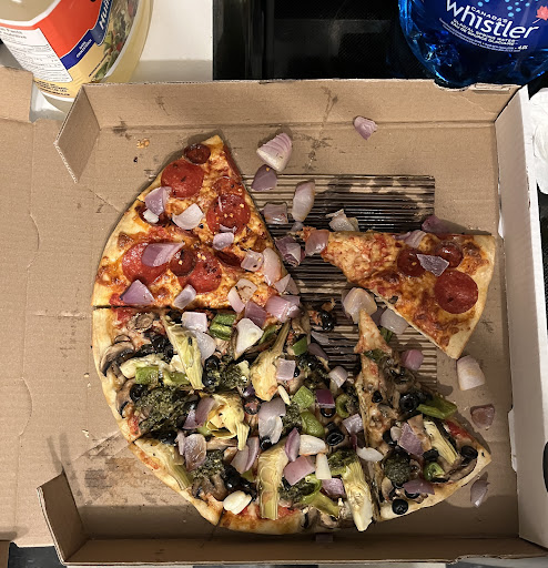 My pizza was customized to have different toppings on either side of the pizza. The veggie side had artichoke(with pieces so big you could choke) pesto that looked almost grey and smelt off. The red onions were also very big and uncooked, like a last minute decision. The other side had pepperoni and still looked weird. I ordered regular crust and it looked almost deep dish, not like how regular pizzaiolo crust usually looks, and it was a bit uncooked too. The slices were so small—definitely not a large(don’t be fooled by the photo—the slices are small) Finally, it was cold right after we picked it up.