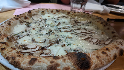 Funghi ā A white pizza loaded with cremini mushrooms, gorgonzola crema, garlic, thyme, rosemary, fior di latte mozzarella, and pecorino. The combination was rich, earthy, and absolutely perfect.