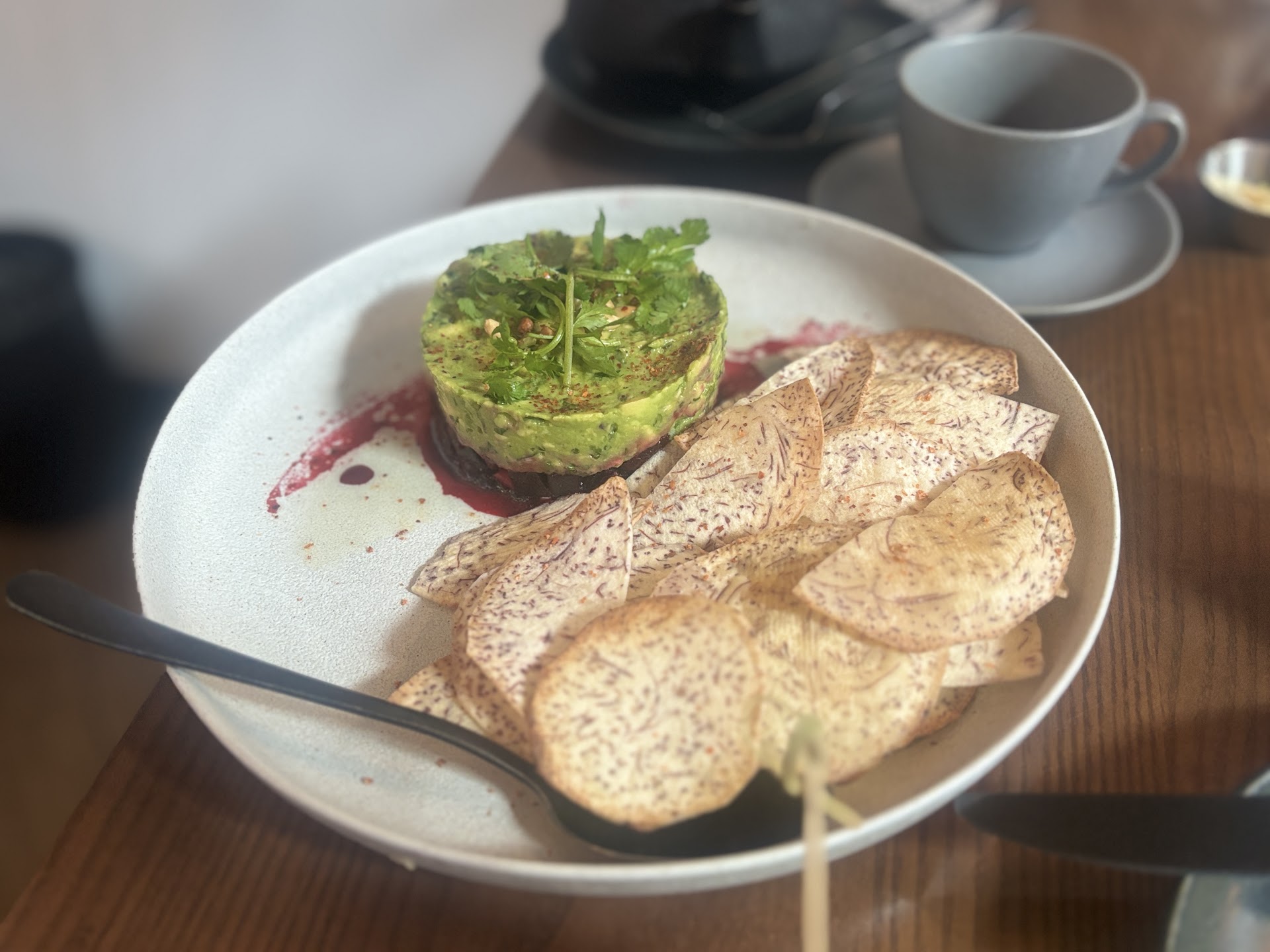 The avocado beet tartare with taro chips was a crowd pleaser: light, whimsical, stunning to look at and delightful if you like either of the main ingredients! It could have been a birthday cake!