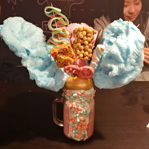 The second time we went we just got the holy milkshake that looks like a very instagrammable foodie pic. But the milkshake toppings were just cheap and overall was just diabetes in a jar. The cotton candy is just cotton candy, there was cereal bars on sticks for show (basically fruit loops bar and Reese's Pieces cereal bar), there was also dollar store rainbow candy, a donut that could've came from Timmies and 2 pretzels covered in punk chocolate that didn't taste that great. For the milkshake itself, it did not taste like anything at all. What we did was that on the side of the jar, we put these pop rock like things in just to have taste.