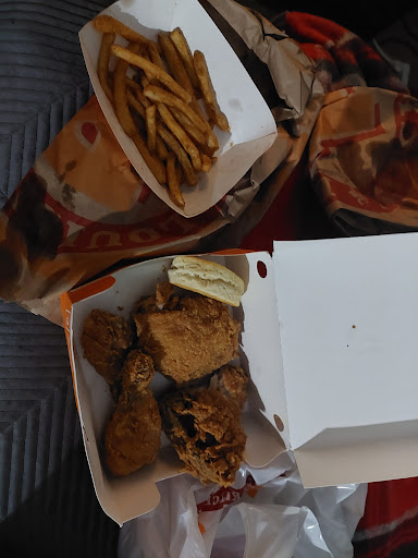 I was there around 5 pm. I will start with what I thought was good about this location. The place was clean and all the supplies in the front were well stacked. The cashier at the front was very respectful and courteous. With that in mind, there were many things that I found unacceptable. The food was kind of cold and the portions were ridiculous. I was so mad when I got home lol I felt you guys counted the fries one at a time to give to me. Yall really said "120 fries exact. There you go, sir." Then you went and looked for the tiniest drumstick that I have ever seen from a chicken. Are yall cooking adult chickens there? I was laughing and angry at the thought of it but I digress. I'm over it lol I gave yall 3 stars because the cashier was nice, the onion rings portion was correct, and the place was clean. Nevertheless, yall need to tell my good sis to stop being stingy with the portions. A couple of fries is not going to kill the budget or revenue of your store. However, customers that stop going to your business because of cheap business practices will hurt...