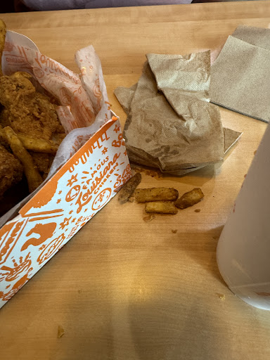 The customer service at this location is an utter disgrace. When my wife opened the packet, the chicken and fries went flying everywhere because they were so carelessly packed. Not only was the packaging atrocious, but they didn't even bother to include all the fries! And the food itself? It was overcooked and barely edible.