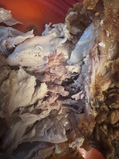 The meat had a rancid taste. I thought the spiciness was off, then I thought maybe it’s old oil, but nope, it was the chicken. I was dipping it in a mix of spice and ketchup and it couldn’t even mask it. It was really gross and I had to throw it out.