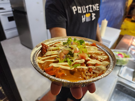 This place is a joke. Reviews probably came from thier friends. Our kids wanted a poutine so we saw this place "poutine hub" but they only had 2 options. Butter chicken/Chicken tikka $9.99. I asked her if she have just a regular poutine since the kids dont eat any of the other ones. When the poutine came out there were literally 20 fries with some shredded cheese on it and gravy. Already frustrated with the poutine, i asked her to cash me out and she said its 9.99+tax. The person ahead of me ordered the butter chicken poutine which was 9.99+tax . So a regular poutine with 20 fries and shredded cheese cost the same as thier specialty poutine? How does that work? What a joke. I asked her hows it the same price and she didnt even give me an answer. A few places down had a decent looking classic poutine for $6. Macdonalds poutine was better than...