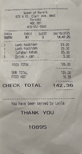 With the price we paid, we could have had a far better experience at another Persian restaurant—better flavors, better execution, and better value. I truly hope the management reconsiders the direction this place is heading in, because the Queen of Persia we knew and loved...