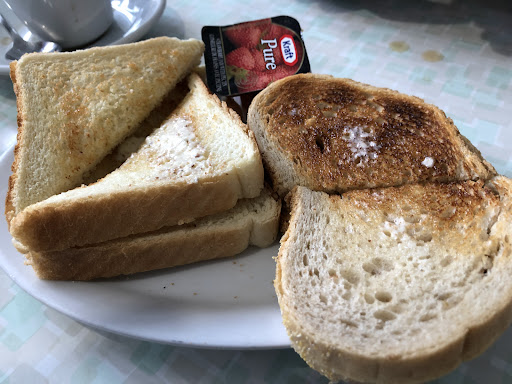 shudders The French toast had globs of margarine tossed on top. No syrup was served. No hash browns or bacon. Just the French toast with margarine globbed on top on a dirty plate. My friends omelette... I asked him on his thoughts. This was his quote 'pretty sure I saw a hair, and just stopped eating it.' 'Worst omelette I've ever had'