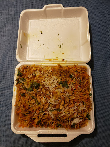 I tried the lamb biryani (medium spice) for the first time last night and it was delicious! The rice was moist and well-cooked, the lamb was soft and tender, the cashews, herbs, and seasonings complimented the meal nicely and the heat was just right- not overpowering of the flavors. And the yogurt-based side to the rice went perfectly with it! The portion size was MASSIVE- half was more than enough for dinner last night and I will eat the rest tonight