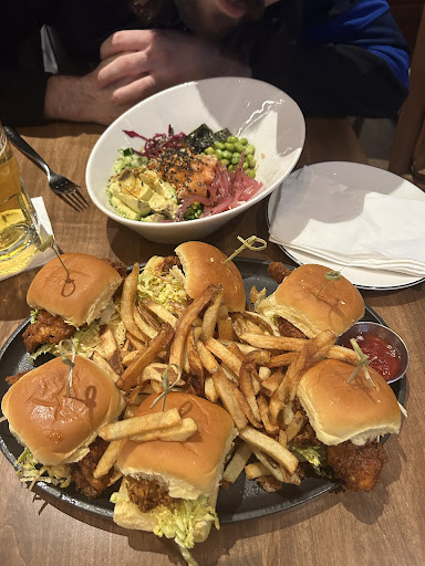 Entrance: Was greeted at the door by very attentive hosts. Sat us really quick. While being walked to our table there was a table for Sol beer setup with a taste test, awesome. Seems like the perfect start to the night. We get seated near the bar with a great view of the big screen, which I might add is huge and impressive. The largest I have seen! Once we were seated it took about 15-20 min and I got tired of waiting so I had to ask another waitress in the area and she went and found our waitress. Capacity for the restaurant at the time was at about half as most left for the Jays game and waitress were standing around chatting.