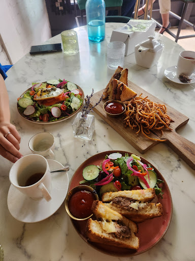 The food took a while to arrive, maybe around 45 minutes. The tea was lovely and I was happy with the short rib grilled cheese and salad. But our waitress forgot to bring us forks, and was unavailable for about 10 minutes. I understand it must have been overwhelming but it unfortunately led to poorer experience. I'm not sure who's fault it is, because our waitress was super friendly and lovely, and I feel like we would've had a better experience if there was another waiter, so our waitress could be more attentive to us.