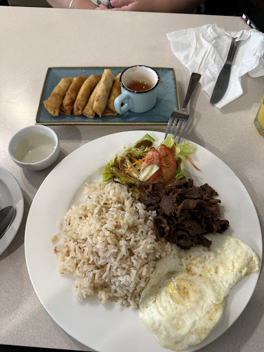 The tapsilog is stir fried beef and the beef was tender and incredibly saucy. Also works super well with a side of rice. There are greens on the plate too to cut into the savory flavor. The portions are more on the smaller side but the quality of the food is there. You can tell the cooking is with care.