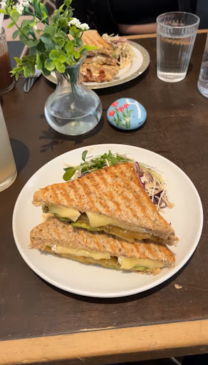 I got their lemonade made in-house, and it was delightful. We both got their âGrown Up Grilled Cheeseâ, at the recommendation of my friend. It was delicious and very healthy! It had an egg, avocado, mayo, pea shoots, onions and a light, melty cheese inside. I need to come back and try some of their available pastries!