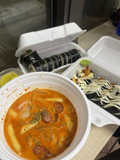 This place has everything you can look for in korean street food, kimbap, their rosĆ© tteokbokki which is amazing and other snacks like kimari and more. Their shrimp kimbap is so yummy, it has tempura shrimp inside and is served with a side of wasabi which I feel like compliments it so well. Iād ask for light mayo though! The tuna kimbap on the other hand is well rolled, the tuna is fresh and everything about this place is so good. Itās our go to for Kimbap. They have a little seating against the window but it only fits like 2-3 people max. Most people usually come for take out. Thereās no washrooms and everything was reasonably priced. One kimbap roll comes 10-11 pieces cut up equally and costs $7-$8 for different fillings. Amazing! Just the best bang for your buck. Iād...