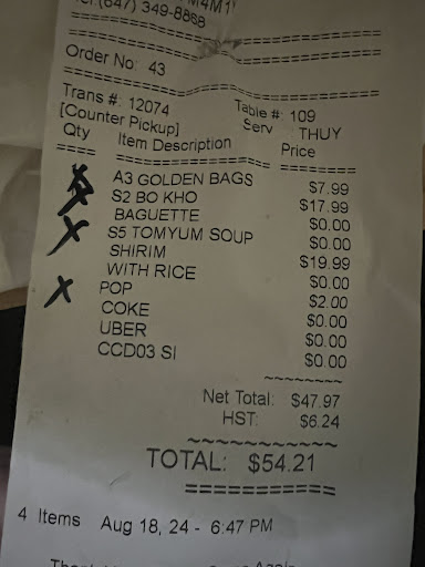 Update: just convinced my friend to order food from this place on Ubereats and so disappointed. Lids not fully closed and the whole Bo Kho soup spilled, which soaked the golden bags. Only Tomyum soup bowl is edible but they didn’t follow the instruction. We asked for no any onions, but still gave us a bunch of red and green onion. Whole package looks messy and no cutlery was given even though we chose to include cutlery. Dine in experience was great but delivery is a mess. 50 minutes waiting and I was so excited but now we have to order food from...
