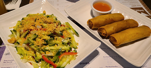 SERVICE WAS STELLAR! OUR WAITRESS WAS SO POLITE AND FRIENDLY. DECOR & AMBIANCE WAS VERY NICE. THEY HAVE LOVELY THAI ARTWORK DISPLAYED AROUND THE RESTAURANT.