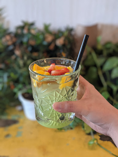 -[WHITE SANGRIA] ⚪ White wine, Limoncello, passion fruit juice, apple juice, ginger ale, fresh lemon juice ⚪ Just like the green sangria, this was too delicious and if you aren't being mindful, you can very easily over consume in alcohol so be careful!