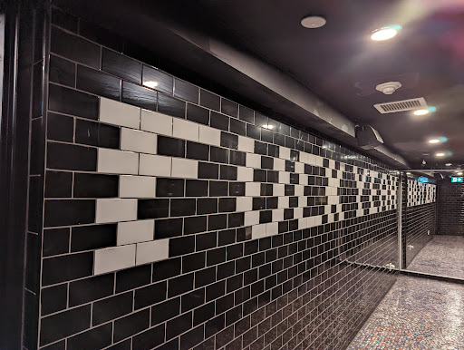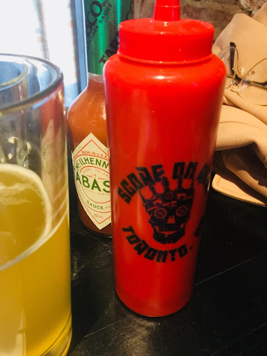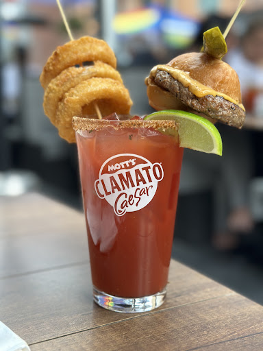 Read moreWent for brunch with my partner to check out the menu. Famous for their Cesars...but be aware, it's a meal. Brunch was tasty, with vegetarian option of grilled Roma tomatoes instead of ham or bacon. Hash browns came out hot. Wings were a large portion but breaded underneath the sauce...prefer the "classic style" with BBQ sauce. Wings comes with two carrot sticks and two celery sticks without sauce. The lemon bowl was a nice touch to wash your saucy hands after eating wings...Service was good, friendly, and attentive staff. Does not have an espresso machine but has coffee for the brunch goers. Decor has exposed brick with industrial ceilings filled with alphabet fridge magnets! Several flat screen tvs playing sports or poker, whichever is your fancy. If you get a window seat, it is a nice view of St James Church and the hustle of busy Toronto street traffic. The magnets continue into the downstairs cave to the washrooms. Individual stalls with seperate toilet and wash basins. To top off the basement decor, the floor is made of beer bottle caps. Overall, playful decor, in a nice pub atmosphere with standard brunch fair and wide selection of drinks. Willl come back to check out the dessert one day...looked good but too full today to...