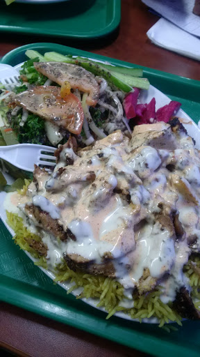 Anyway - on to the food. I ordered a mixed plate, which came with rice, humus and salad. Toppings were tahini and hot sauce.