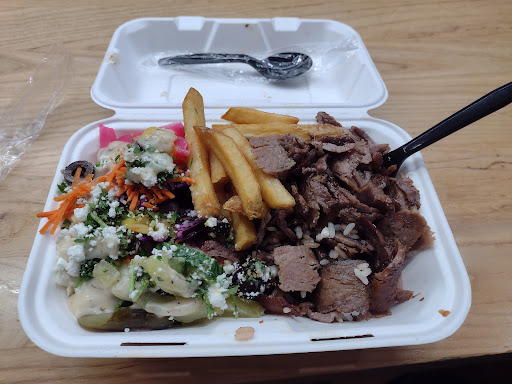 Read moreGood size portion. Greasy diner. Got the medium beef plate. It is as advertised - fresh healthy tasty. Tastes authentic. Missing the pickled whole peppers though. As well as the tahini and hot sauce.