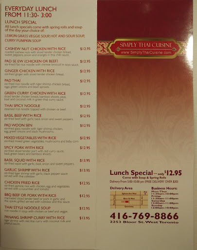 Read moreI love this Thai place near our home! It's so convenient as it's steps to Runnymede station on Bloor Street and this family restaurant has excellent service!! The website to order take-out was simple to use and best of all, it remembered our information from the last time we ordered which made it very easy to place another order here. What I didn't know was that if your order is over $30, they provide free delivery (local area) - definitely great for these cold days in Toronto!!